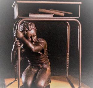 What’s better than peddling fear in the form of a 3D statue of a child hiding under a school desk, terror gripping his young face as he cowers in fear from an active shooter?